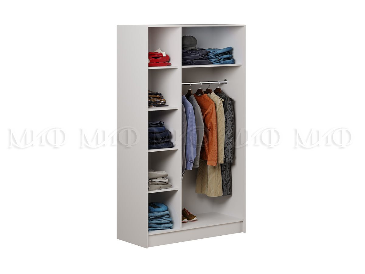 Шикарный, белый шкаф "Алекс" не только красивый, но и многофункциональный, так как внутреннее наполнение с полками и штангой.